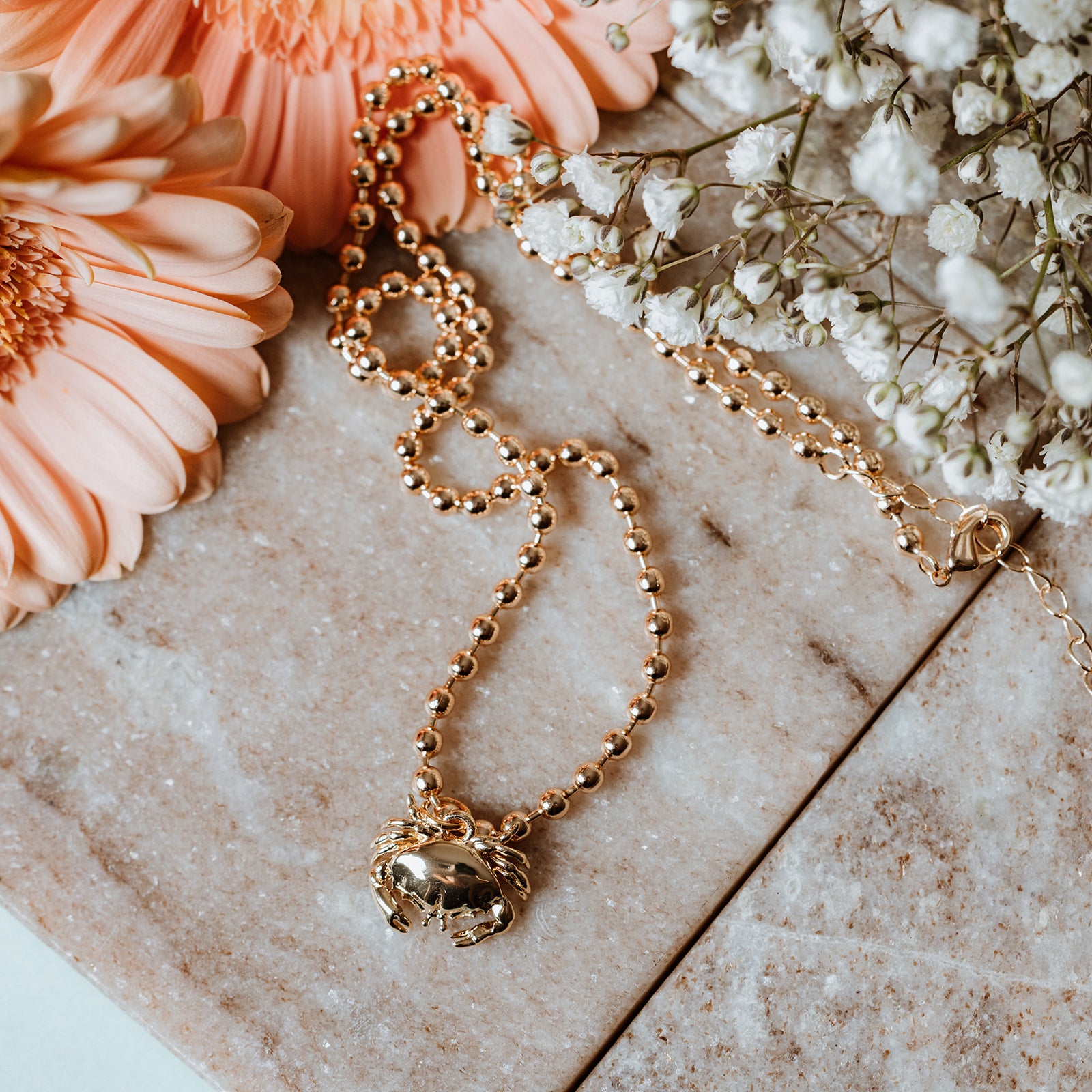 Charming crab pendant on a delicate ball chain—fun, unique, and effortlessly stylish.