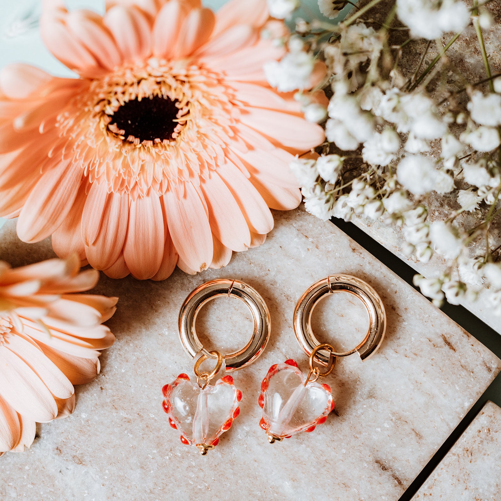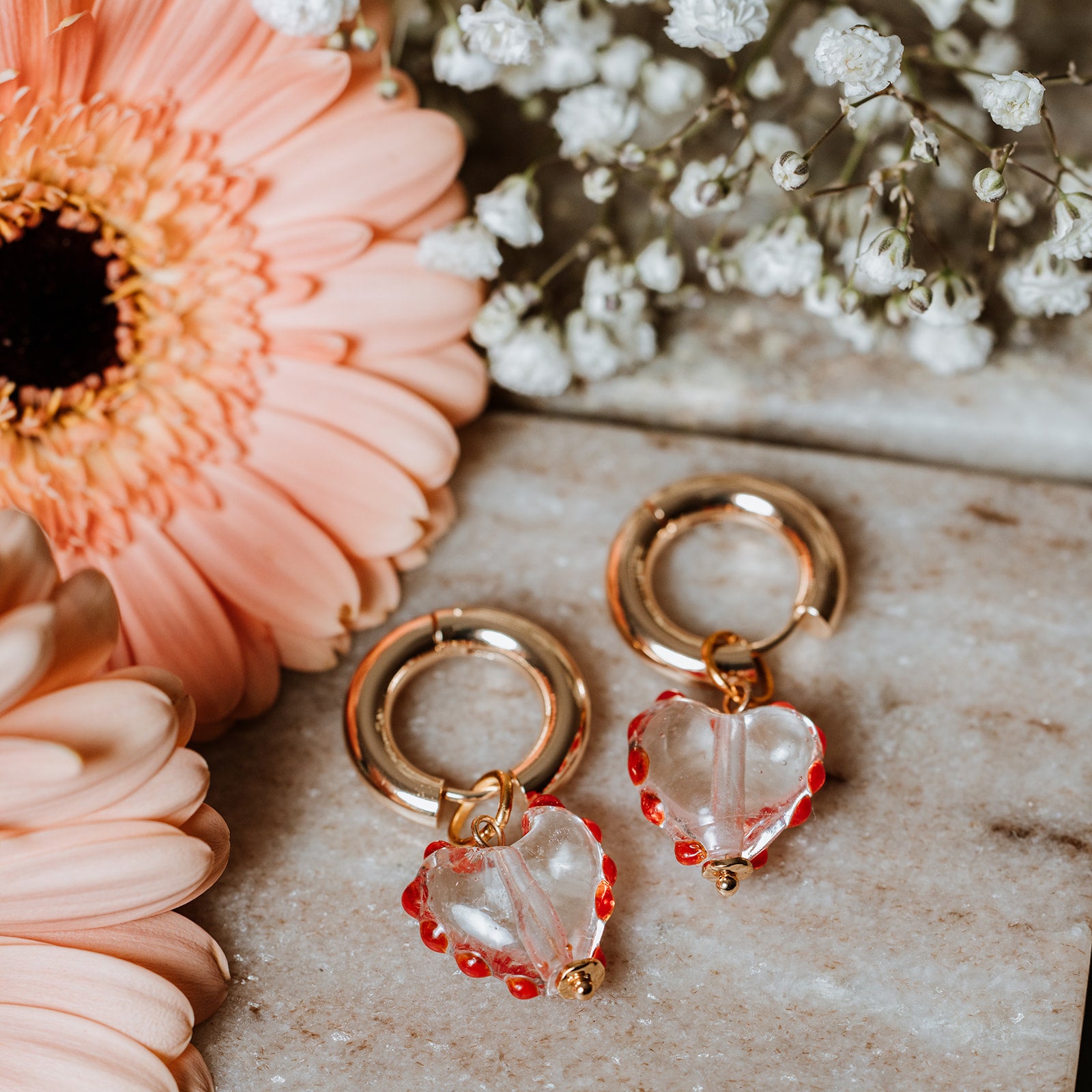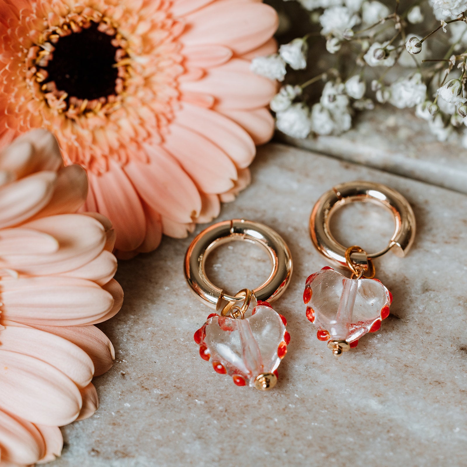 Bold hoops, delicate heart. Murano glass meets modern metal in this striking, yet simple design.