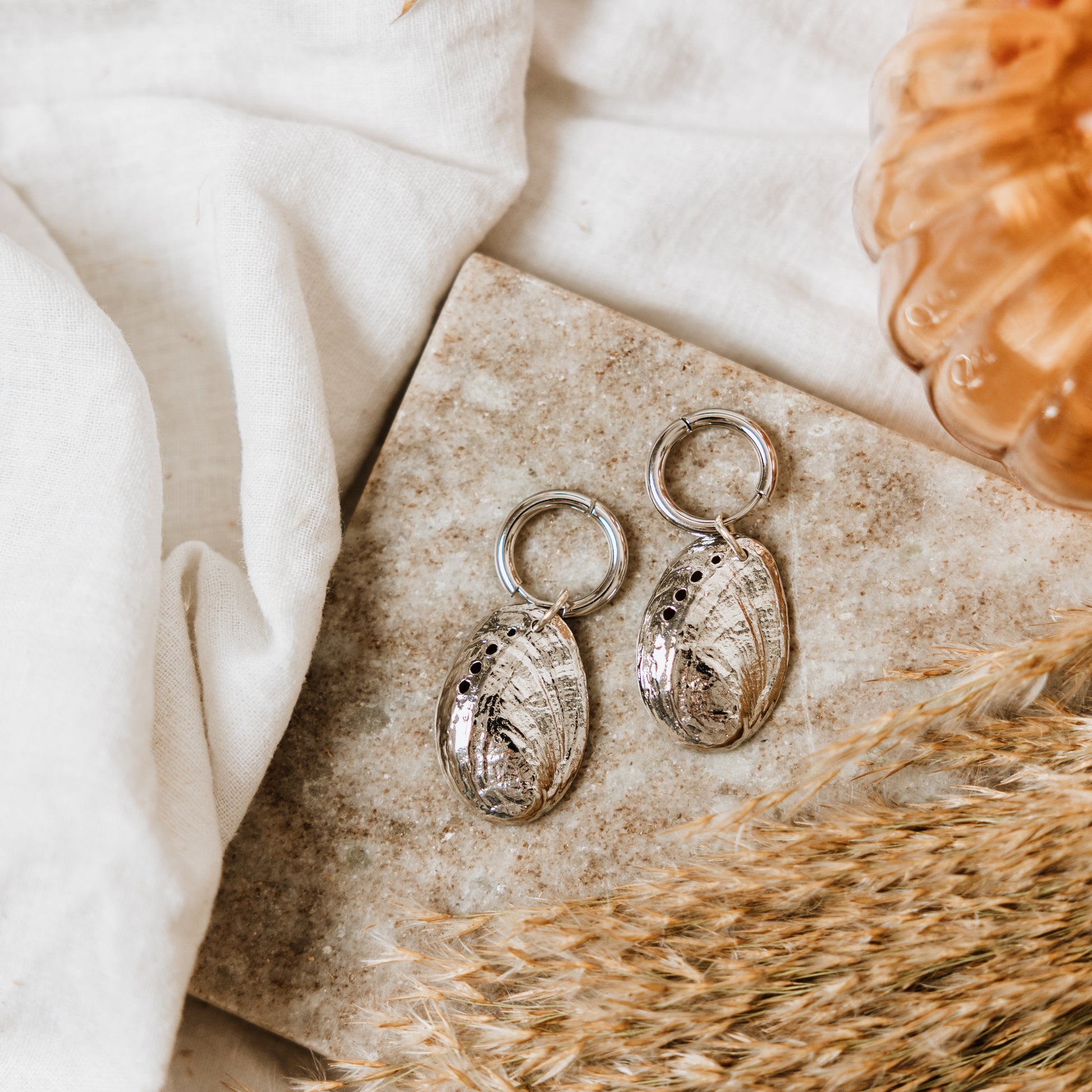 Bold yet refined, these chunky hoops feature a delicate abalone shell pendant for a touch of natural shimmer. Lightweight and versatile—perfect from day to night.
