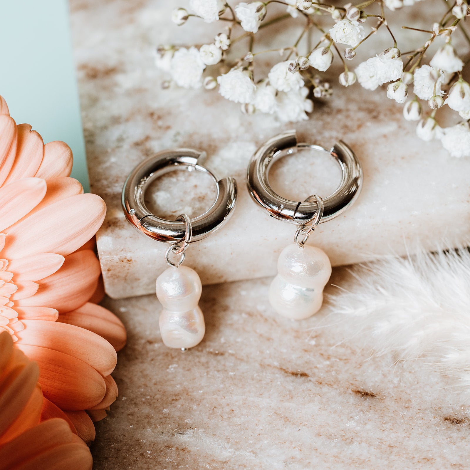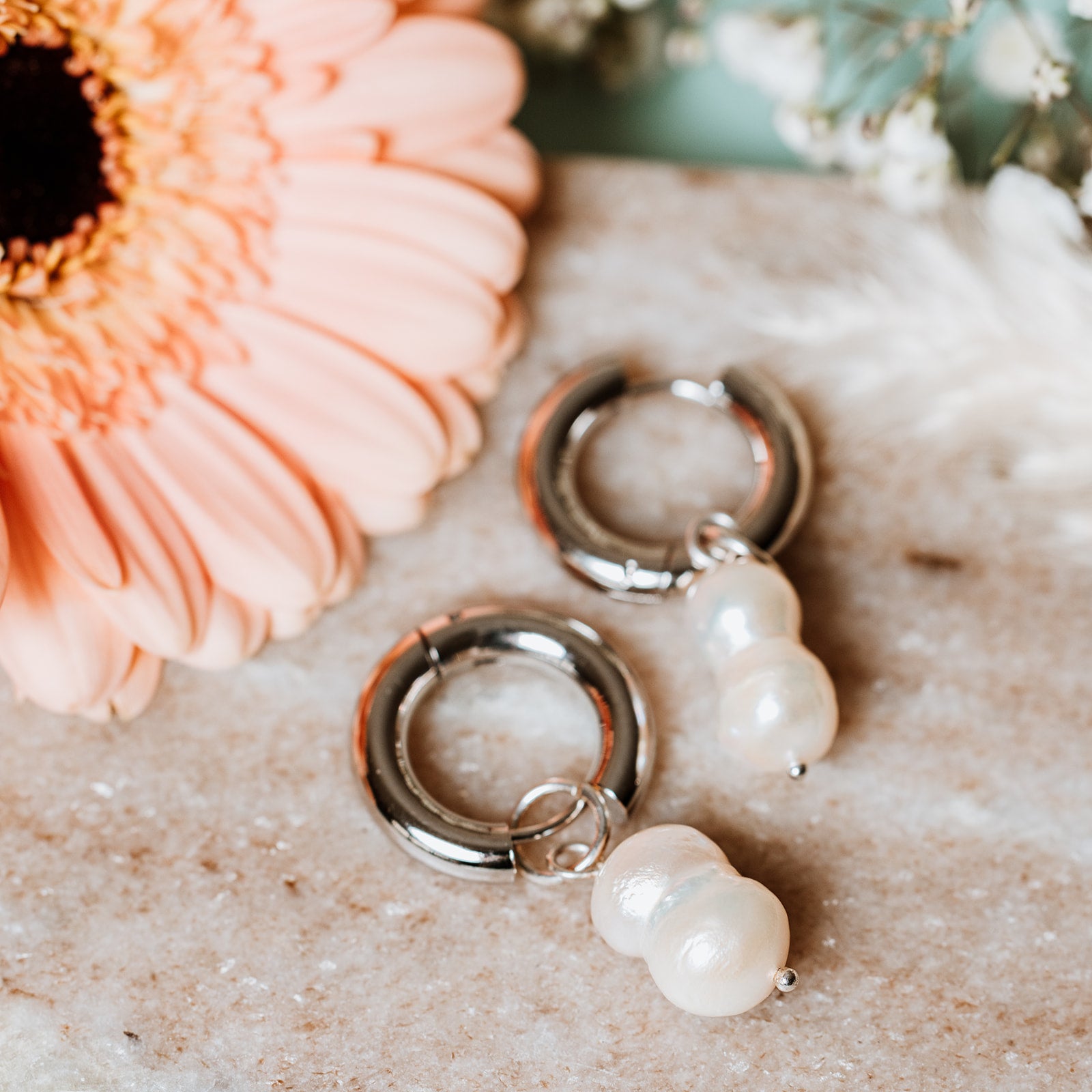 Modern silver hoops meet the organic charm of a peanut pearl. A unique twist on a classic—effortlessly chic for any occasion.