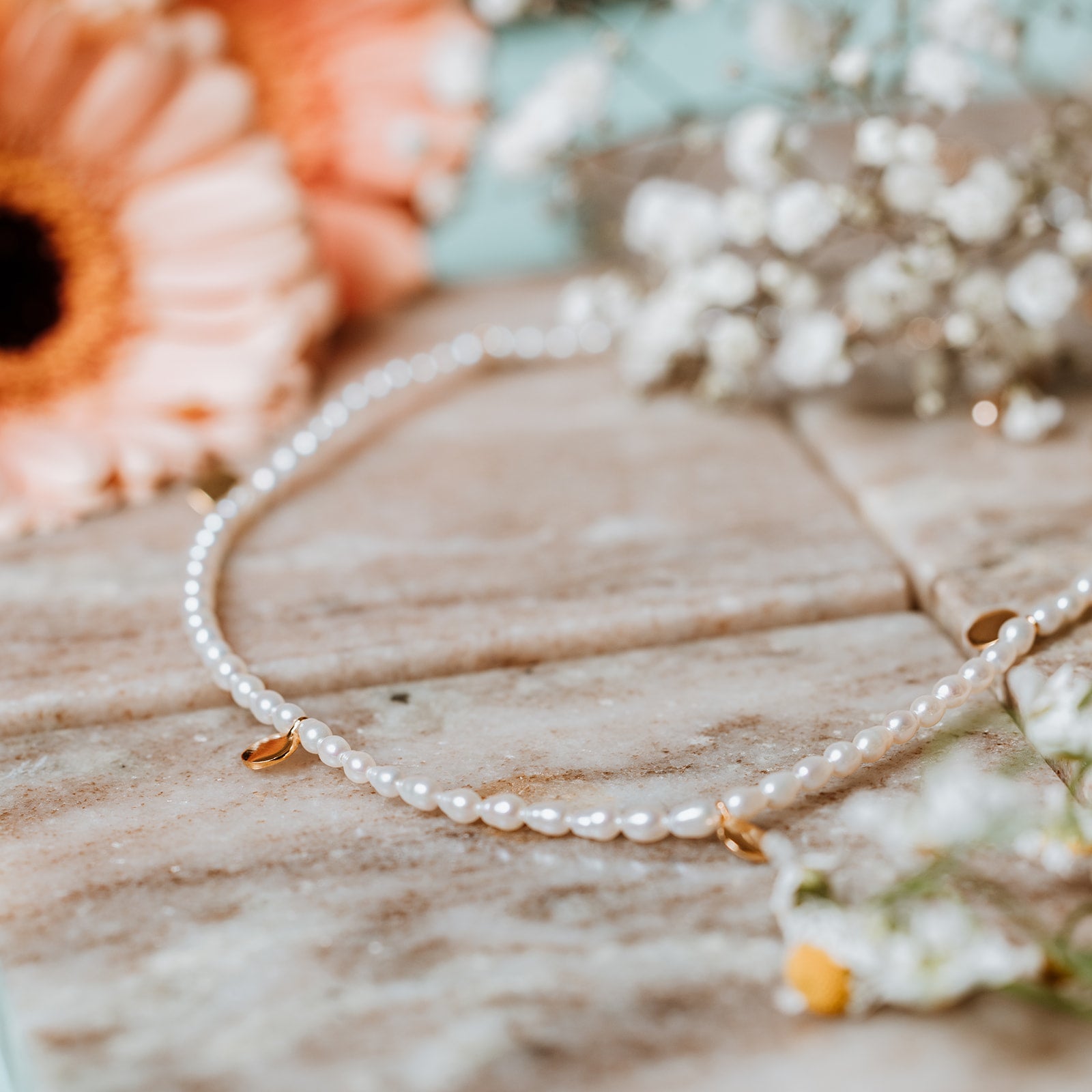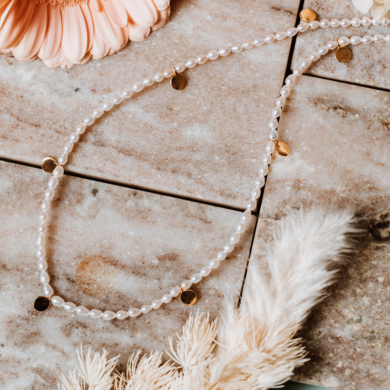 Classic pearls, modern charm. A delicate strand finished with a coin accent—refined, with just the right edge.
