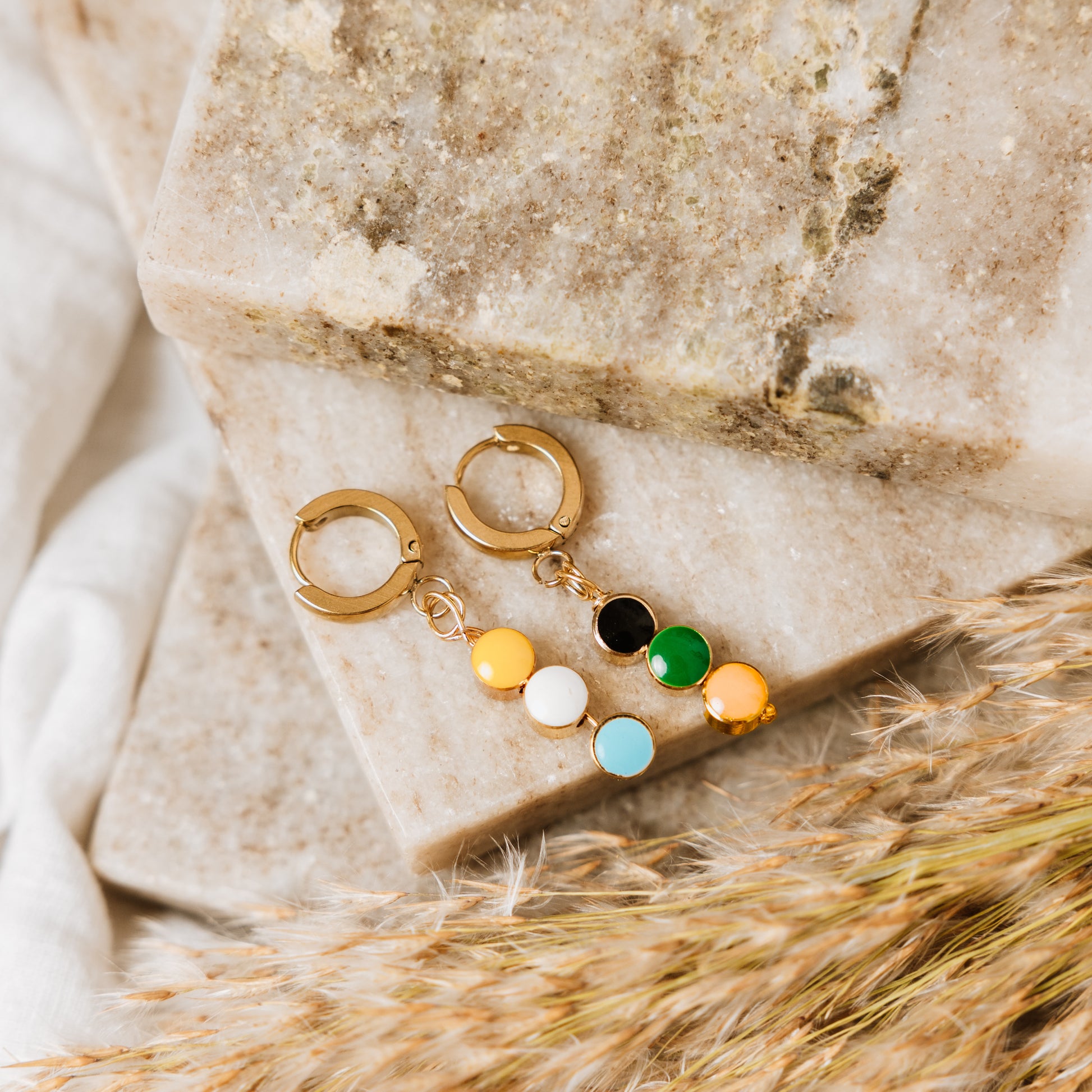 Tiny pops of colour, clean gold shine. Everyday huggies with a playful twist.