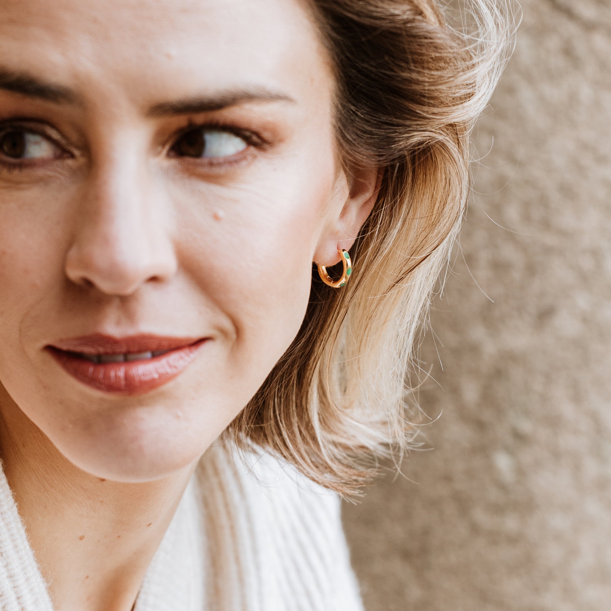 Hoops with enamel dot detail - Emerald Green