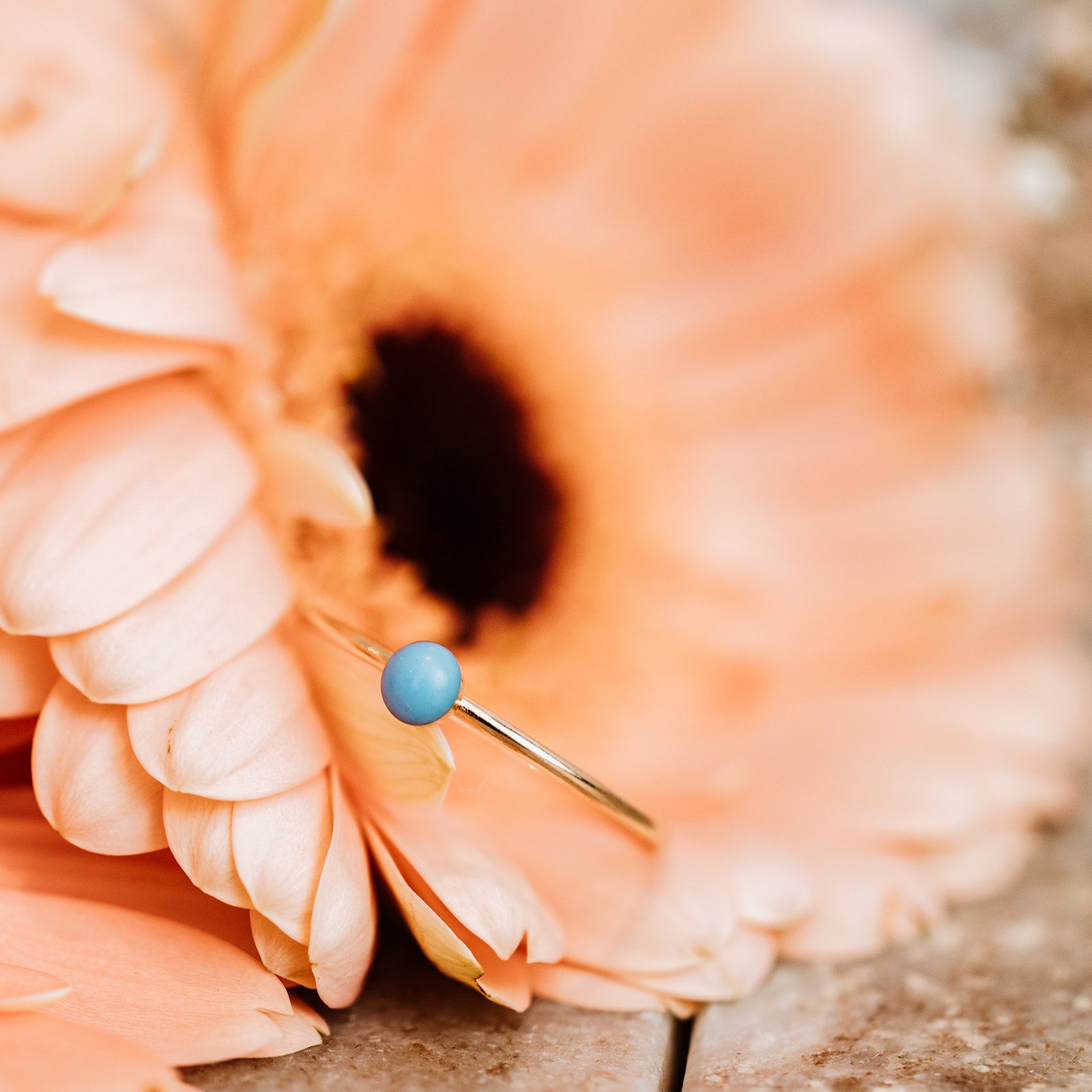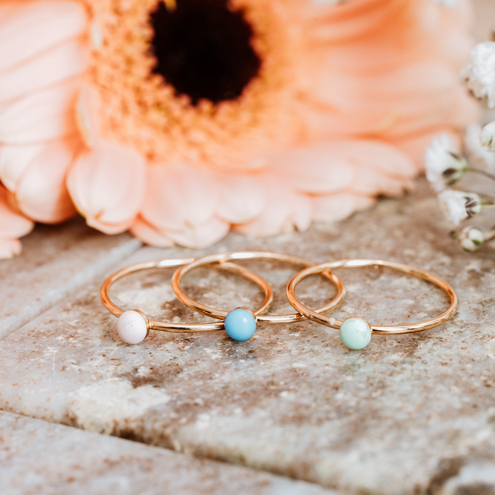 Gold vermeil stacker ring with pastel enamel stone