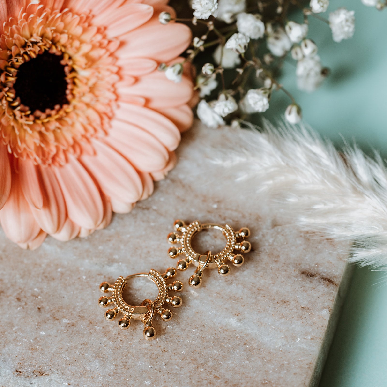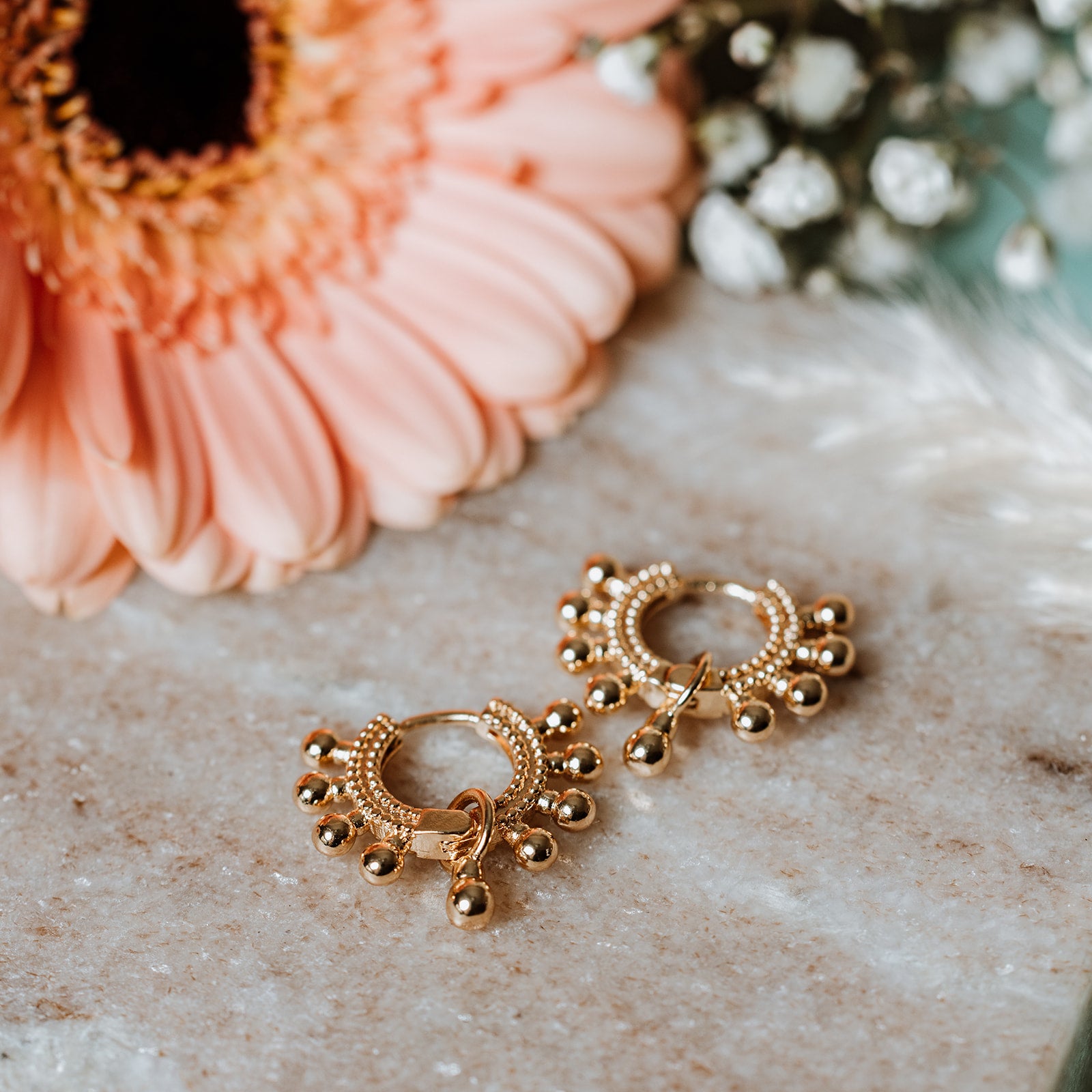 A golden sun pendant, a sleek huggie clasp—effortless warmth and shine in one
