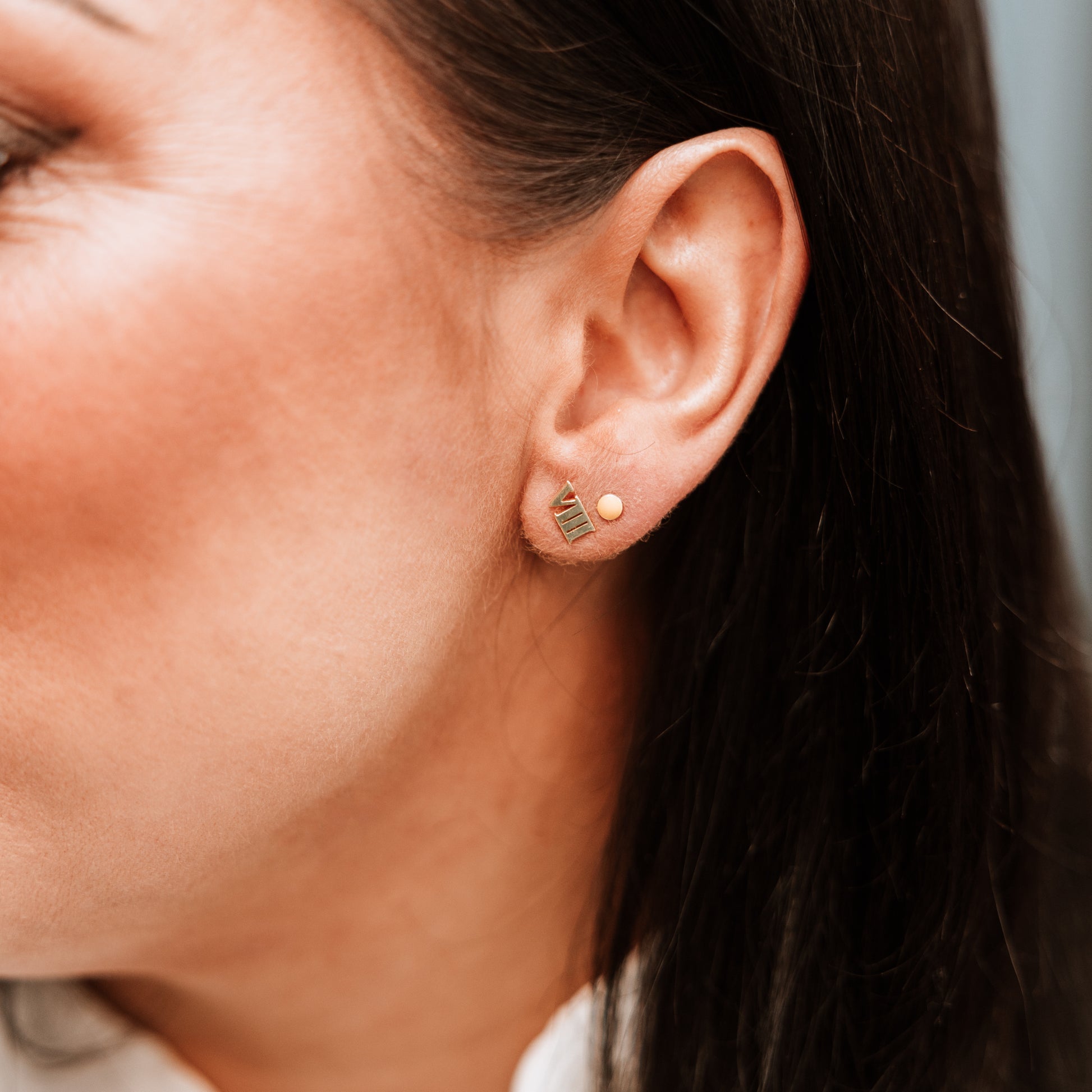 Personalised elegance. Custom Roman numerals in sleek gold studs for a unique, timeless look.